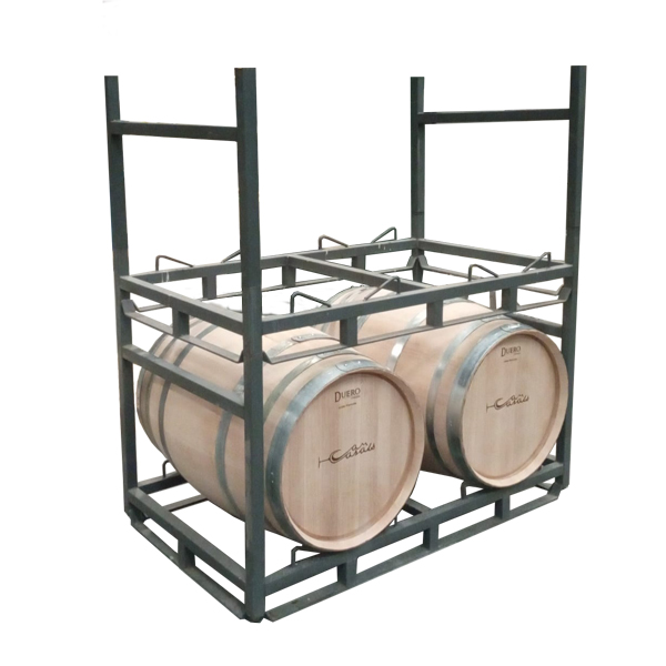 El durmiente modular doble metálico es un soporte para dos barricas de 225 litros, adecuado tanto para bodegas industriales como para producciones particulares. Se desmonta en tres piezas para su almacenaje cómodo y eficiente.